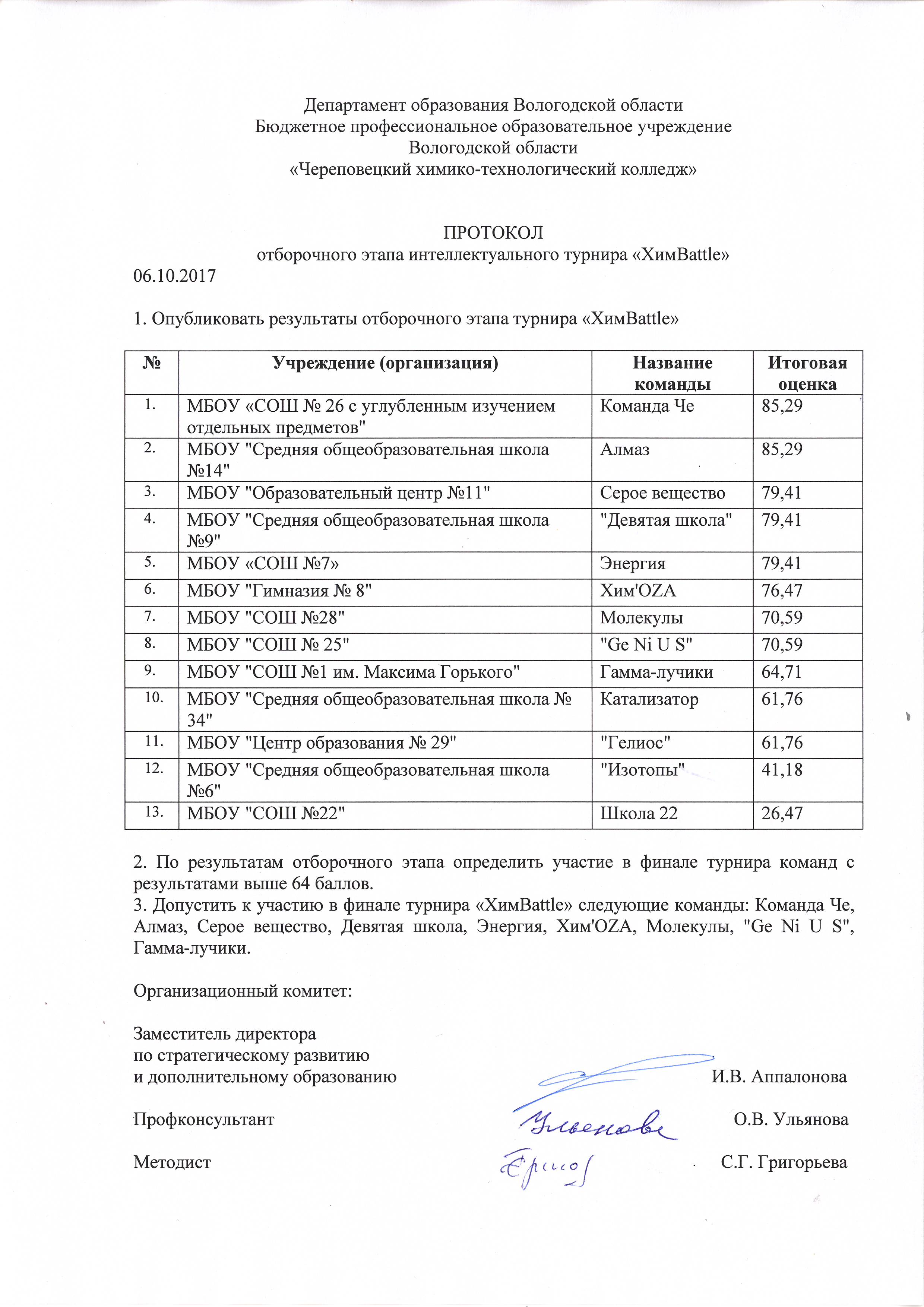 Результаты отборочного этапа турнира "ХимBattle"
