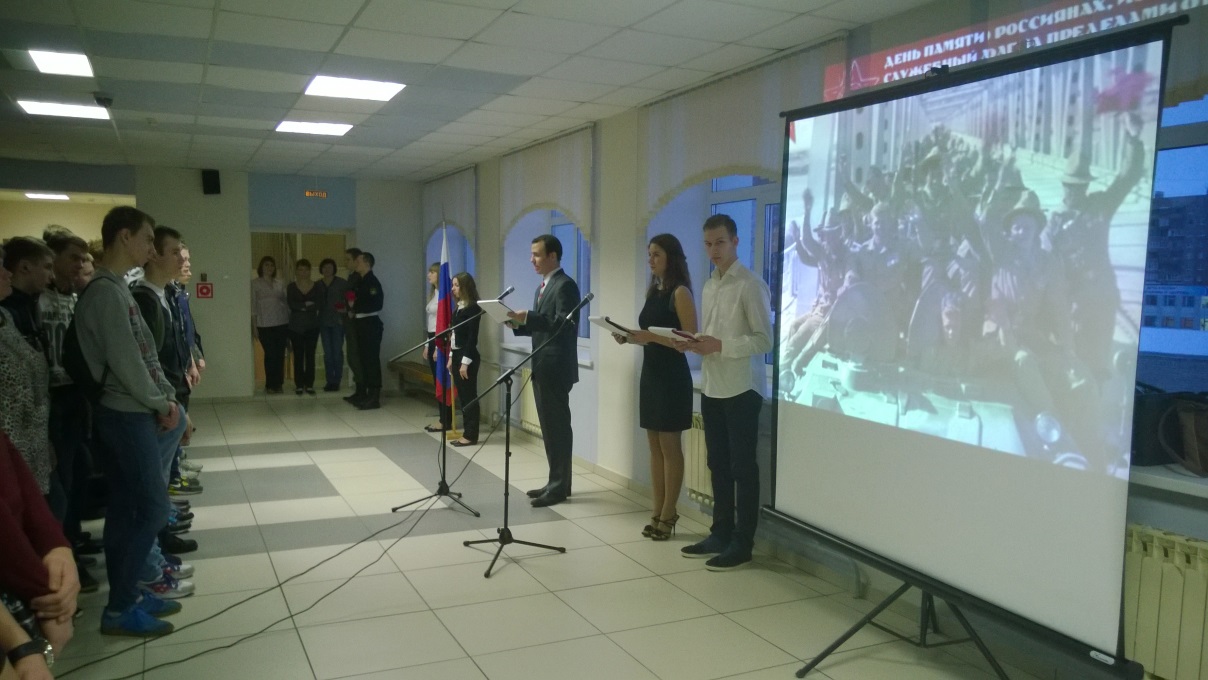 15 февраля в колледже состоялась торжественная линейка, посвященная Дню Памяти о россиянах, исполнявших служебный долг за пределами Отечества.
